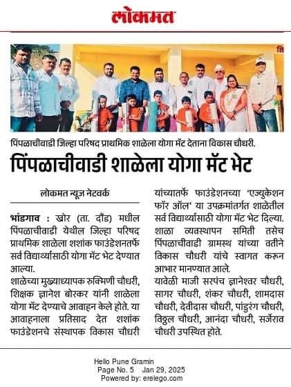 At Shashank Foundation, we believe that education goes beyond textbooks—it includes well-being, mindfulness, and physical health. As part of our “Education for All” initiative, we recently provided yoga mats to students at Zilla Parishad Primary School, Mouje Pimplachiwadi, Khor.